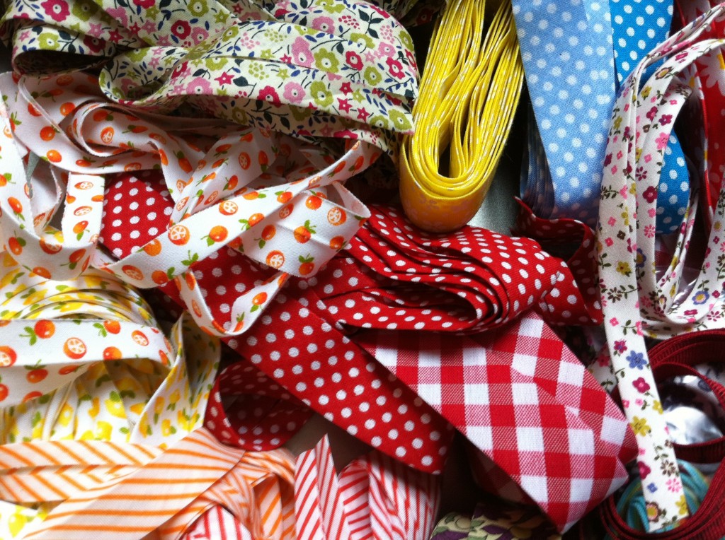 Das Schnittmuster wird auf den Stoff gelegt und die Markierungen per Kreidepapier übertragen. Alle Einsetzpunkte werden mit einem kleinen Schnitt in den Stoff angebracht. Dann wird zugeschnitten, wo nötig Einlage aufgeklebt, genäht und gebügelt.